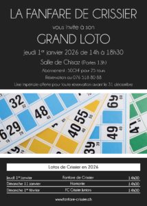Le loto organisé par la fanfare aura lieu le 1er janvier 2026.